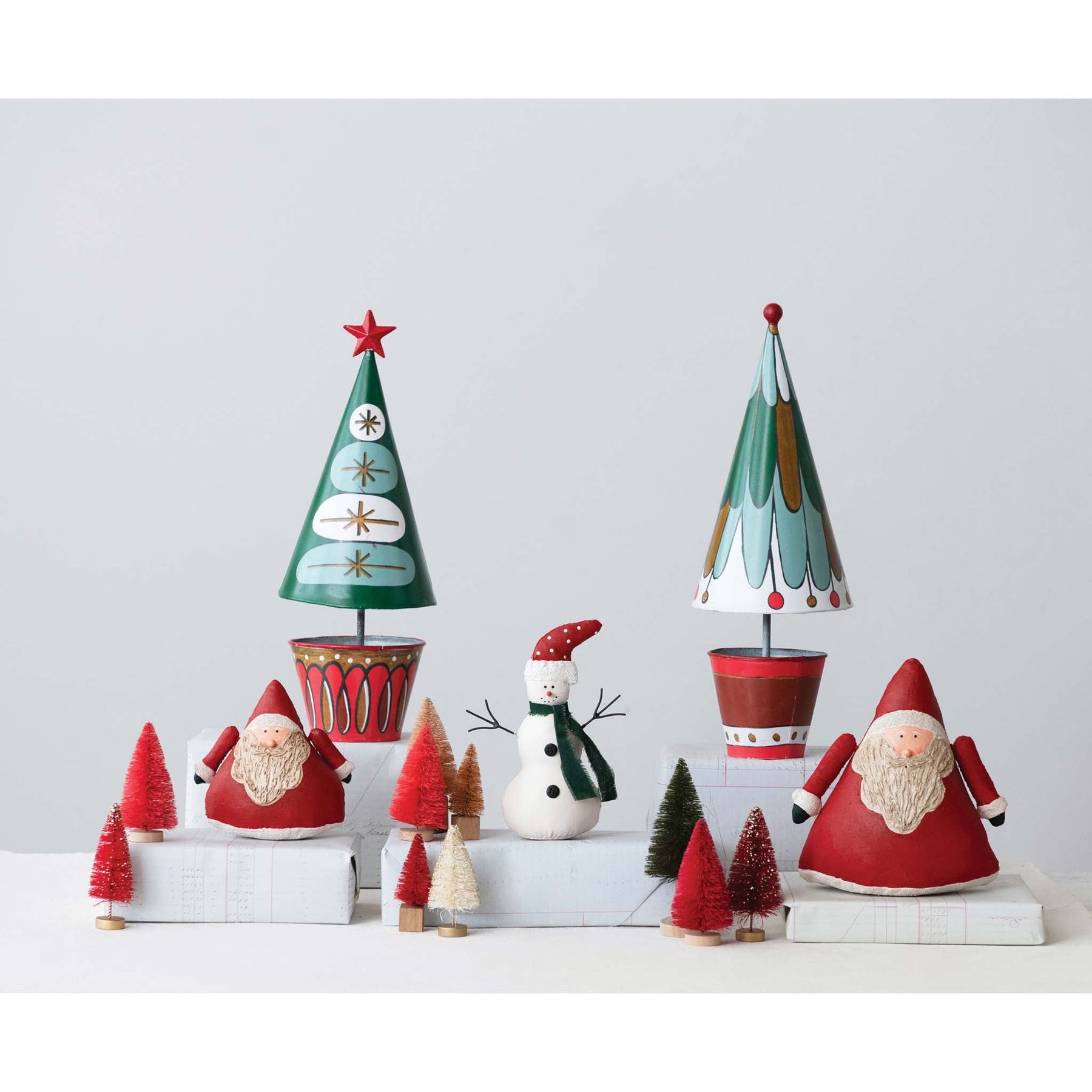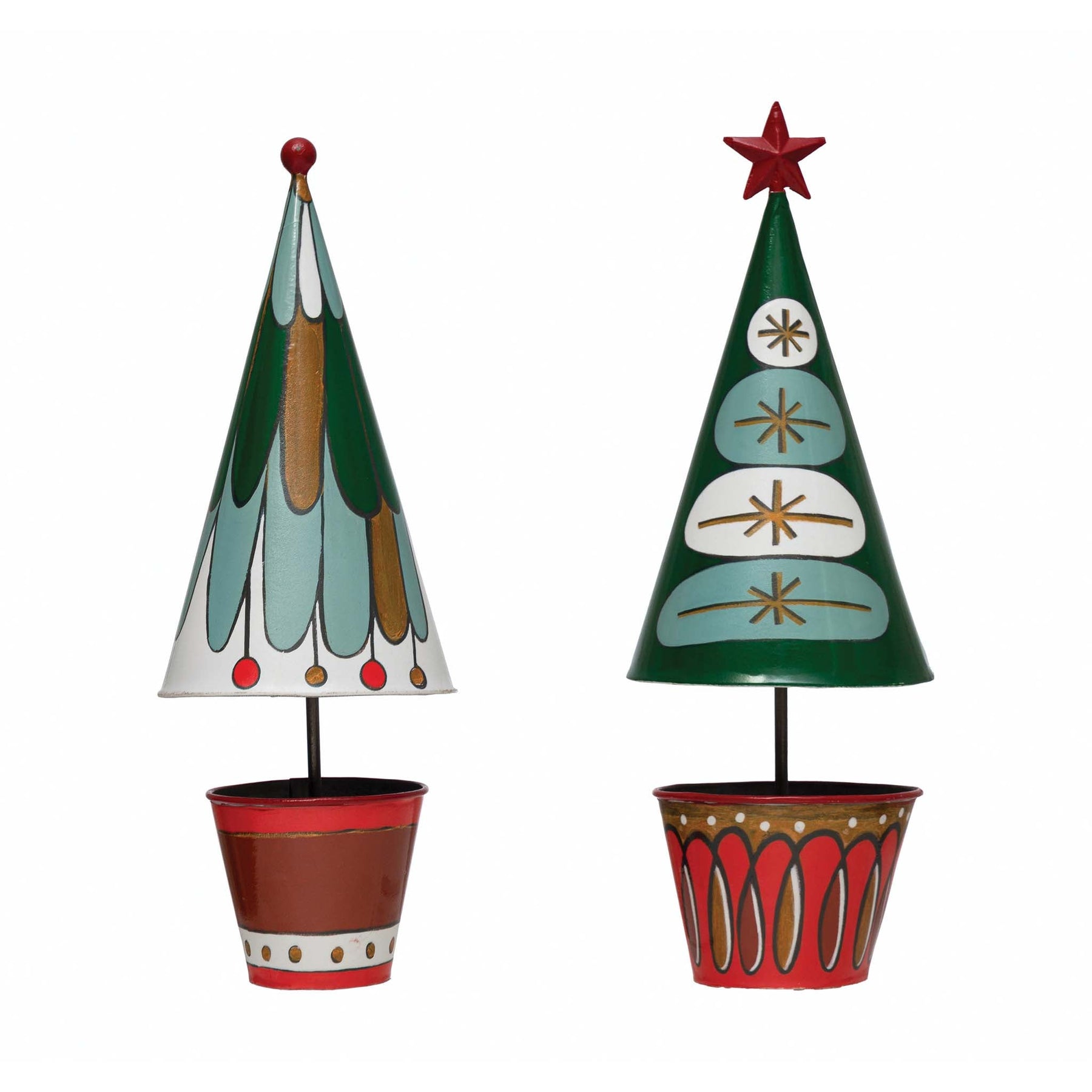 Whimsical metal tree reminiscent of Dr. Seuss and classic holiday shows such as Rudolph the Red-Nosed Reindeer.