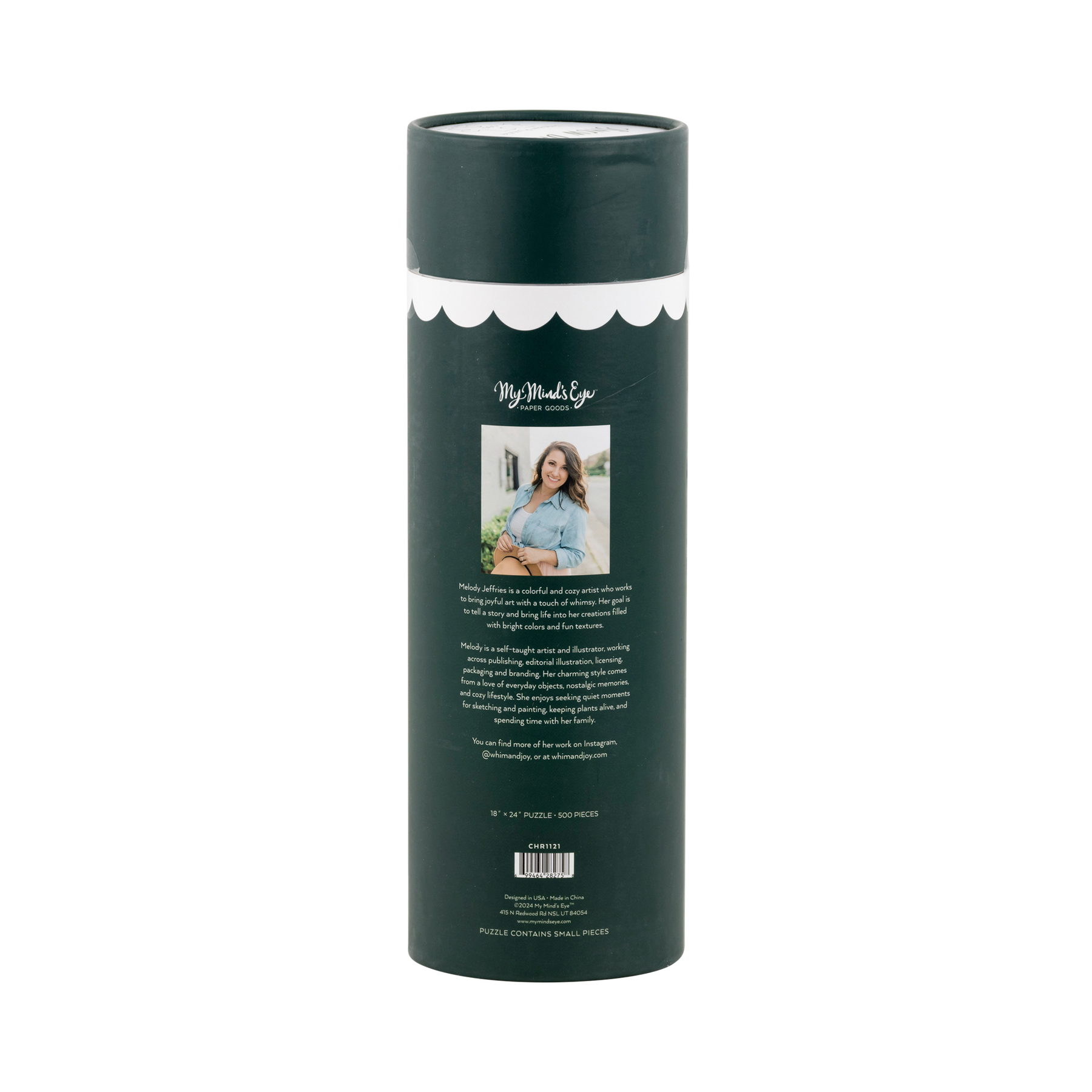 Get ready to skate into the holiday spirit with our Snow Day Winter Puzzle! Featuring a charming winter scene of skating on the canal, this puzzle is perfect for cozying up on a snowy day. Piece by piece, watch the scene come to life and bring joy to your winter days. Featured artwork from Melody Jeffries * chipboard jigsaw puzzle * 500 pieces * finished puzzle size is 18" x 24"